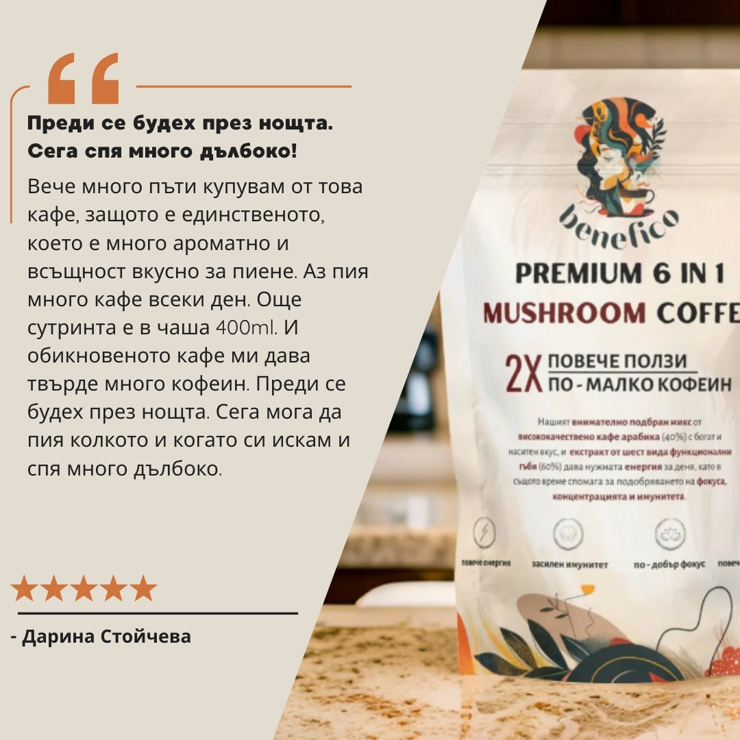 ✅ 30 - дневна доза кафе Benefico с шест вида функционални гъби